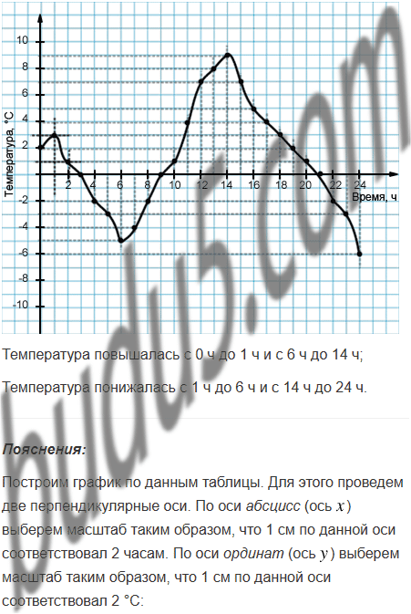 Пользуясь графиком, найдите, на протяжении какого времени температура повышалась и на протяжении какого времени понижалась.
