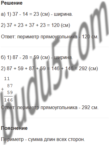 а) Длина прямоугольника 37 см. Это на 14 см больше его ширины. Чему равен периметр прямоугольника?