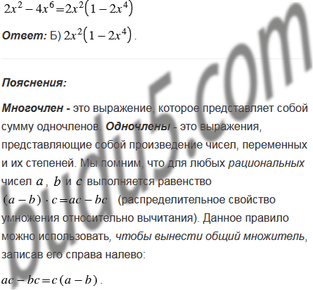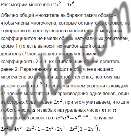 Представьте многочлен в виде произведения одночлена и многочлена.