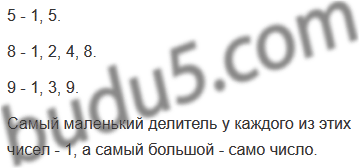 Задание № 8. Назови делители чисел 5, 8, 9,12. Какой делитель у каждого из этих чисел самый маленький, а какой - самый большой? Сделай вывод.