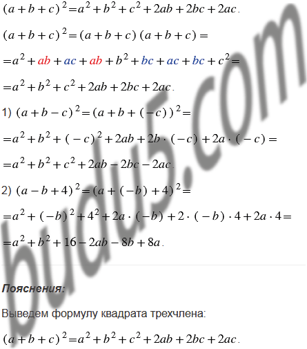Выведите формулу квадрата трехчлена: