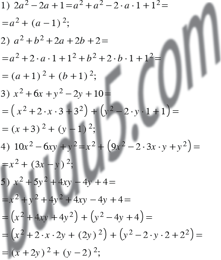 Представьте в виде суммы квадратов двух выражений многочлен: