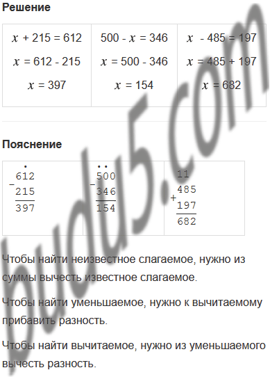 + 215 = 612 500 - = 346   - 485 = 197
