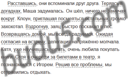Расставшись; теряясь в догадках; ничего не замечая вокруг; приглашая посмеяться остальных; вздрогнув; возвращаясь домой; ожидая согласия на встречу; уже научившись читать; стоя в очереди за билетами в театр; решив все проблемы.