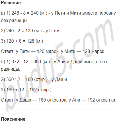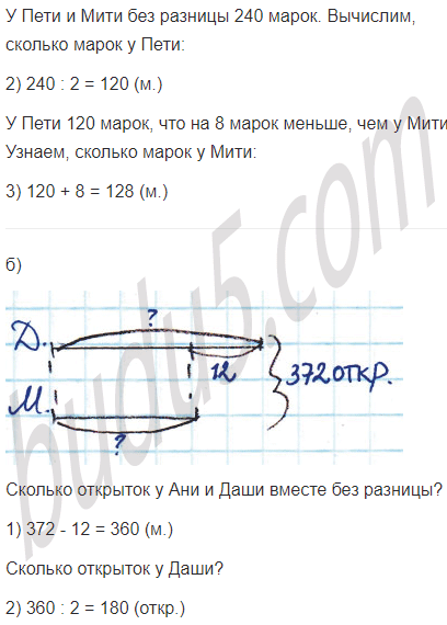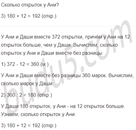 б) У Ани и Даши вместе 372 открытки, причём у Ани на 12 открыток больше, чем у Даши. Сколько открыток у каждой из девочек?