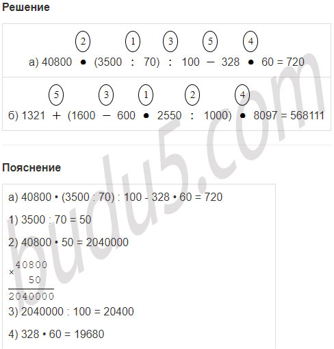 | а) 40800 • (3500 : 70) : 100 - 328 • 60 |