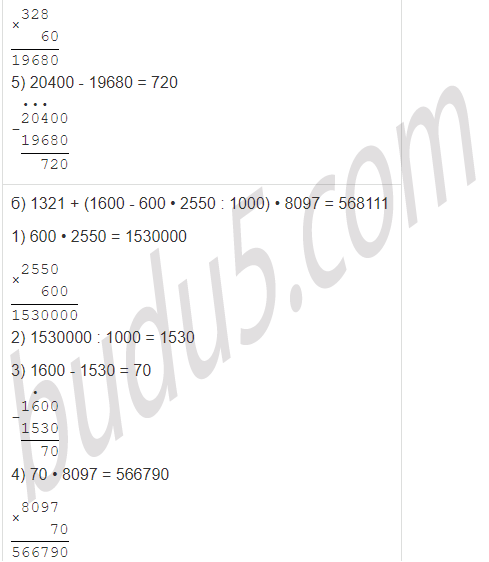 | б) 1321 + (1600 - 600 • 2550 : 1000) • 8097 |