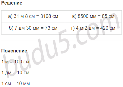| б) 7 дм 30 мм = ... см | г) 4 м 2 дм = ... см |