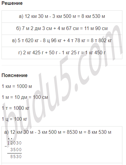 | а) 12 км 30 м - 3 км 500 м |