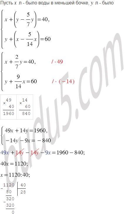 В двух бочках ёмкостью 40 л и 60 л было некоторое количество воды. Если в меньшую бочку долить доверху воды из большей, то в большей останется