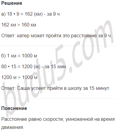 а) Расстояние между двумя пристанями 160 км. Может ли катер пройти это расстояние за 9 ч, если будет идти со скоростью 18 км/ч?