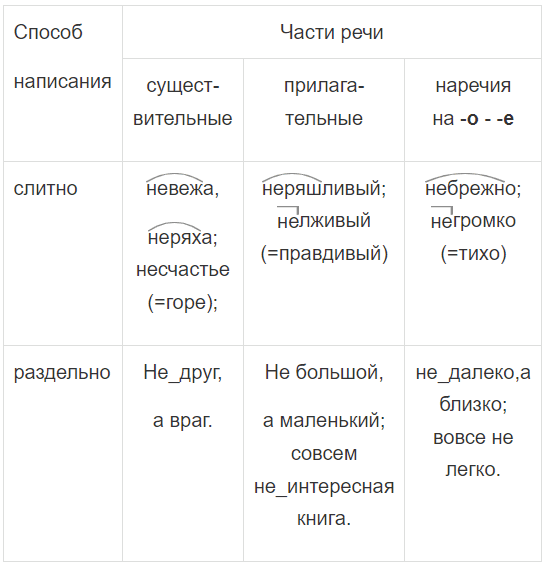Заполните по образцу таблицу «Не с существительными, прилагательными и наречиями на -о и -е» своими примерами, обозначая в них условия выбора слитного или раздельного написания не • Составьте два сложных предложения.