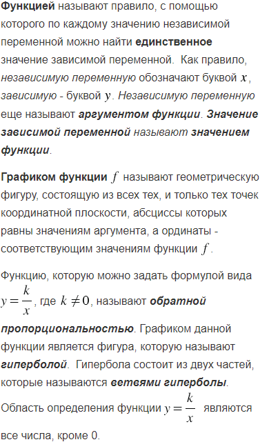 3) значения аргумента, при которых функция принимает отрицательные значения.