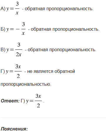 Какая из данных функций не является обратной пропорциональностью?