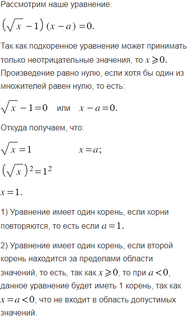 При каких значениях уравнение имеет только один корень?