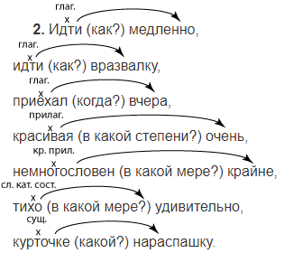 2. Выпишите из правой колонки словосочетания с наречиями в качестве зависимого слова. Укажите, к каким частям речи относятся главные слова в словосочетаниях и на какие вопросы отвечают наречия.