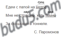 • Спишите. Найдите в предложениях и подчеркните неизменяемое слово. Укажите над ним часть речи.