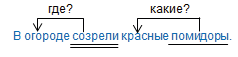 Устный разбор предложения: на вопрос что? отвечает слово помидоры, значит, оно будет подлежащим, помидоры (что сделали?) созрели, слово созрели обозначает действие, совершаемое подлежащим, значит, оно является сказуемым; созрели (где?) в огороде, в огороде - второстепенный член предложения, который поясняет сказуемое; помидоры (какие?) красные, красные - второстепенный член, поясняющий подлежащее.