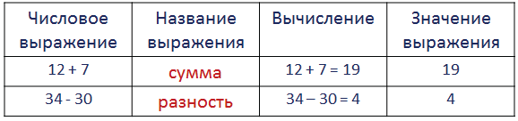 В этом разделе мы узнаем, что называют числовым выражением и значением выражения, научимся читать выражения.